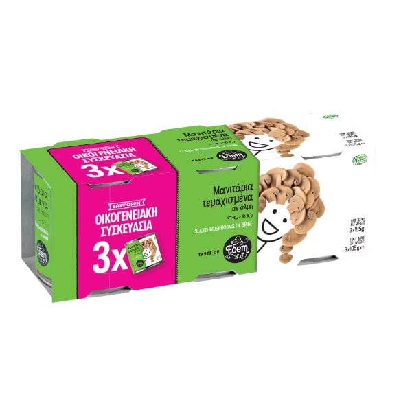 Edem Μανιτάρια Τεμαχισμένα 3x185g Οικογενειακή Συσκευασία